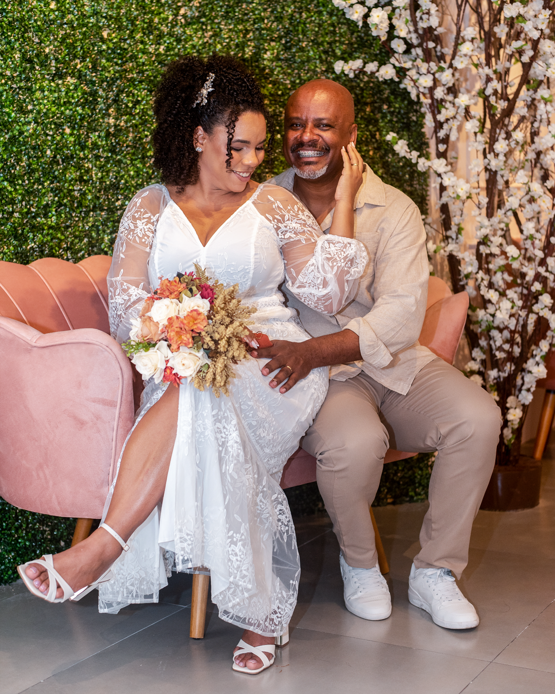 "Nossa jornada a dois nos trouxe até aqui. Com o amor mais forte do que nunca, temos a honra de convidar você a fazer parte do nosso grande dia."